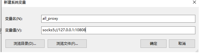 新建all_proxy,值设置为socks5://127.0.0.1:10808